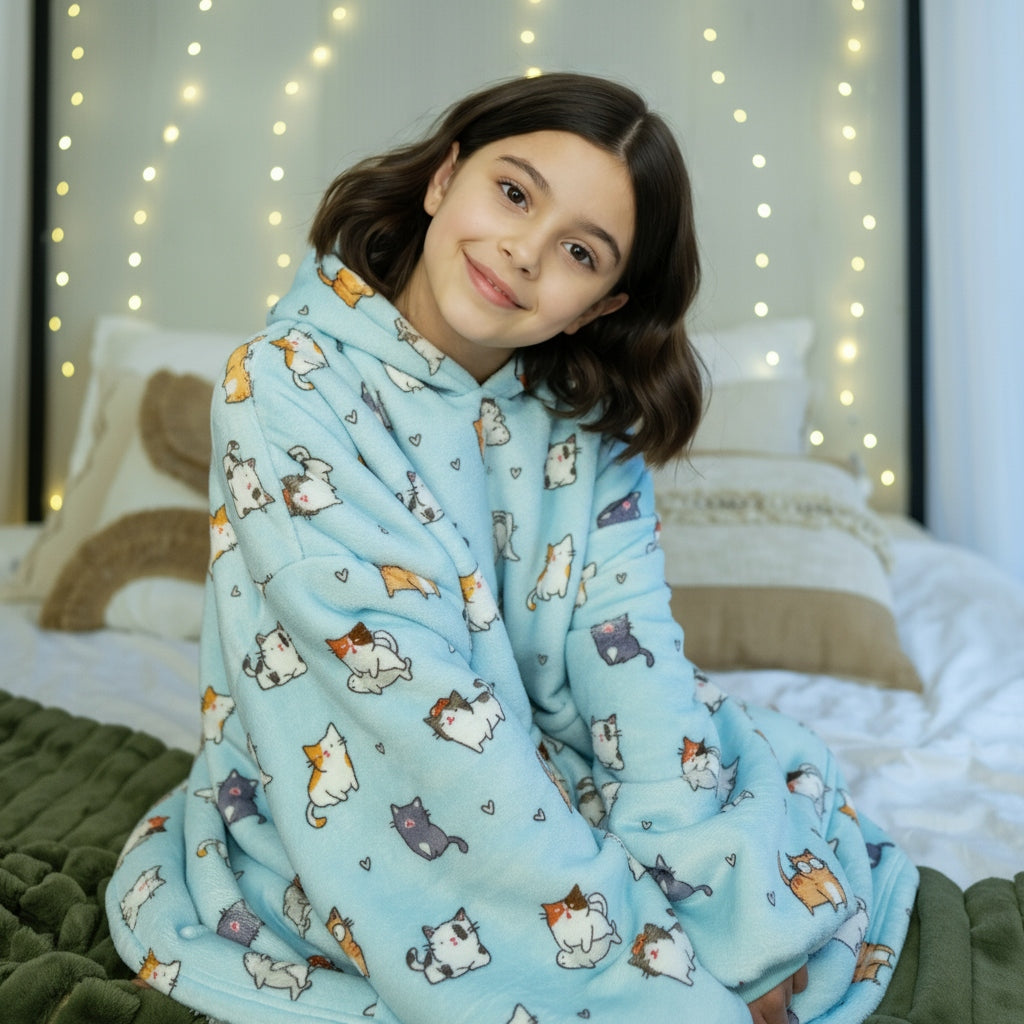 Vaikiškas džemperis-antklodė su gobtuvu (oversize)
