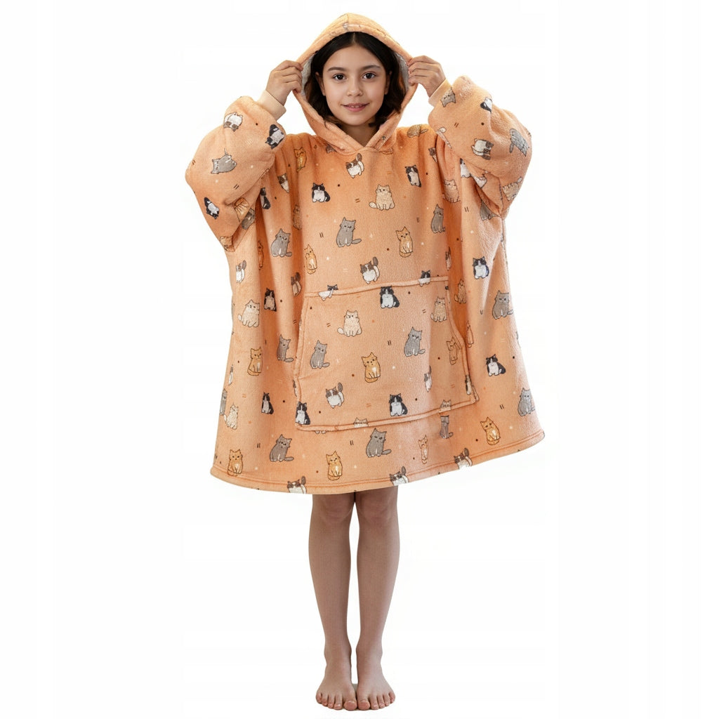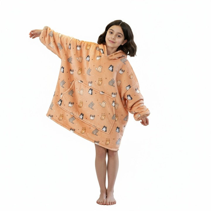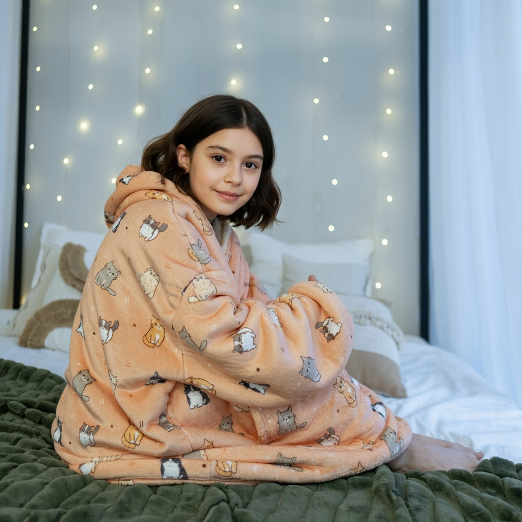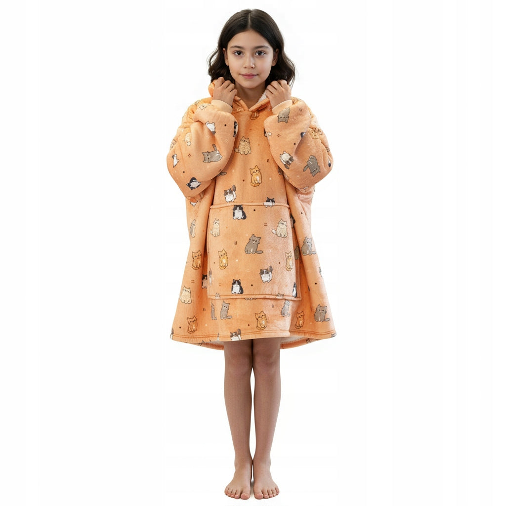 Šis vaikiškas džemperis-antklodė sukurtas maksimaliam jaukumui ir šilumai. Tai puikus pasirinkimas vėsiems vakarams namuose, ramiam poilsiui ar laikui po darželio ir mokyklos. Džemperis sujungia antklodės šilumą ir džemperio patogumą, todėl vaikas jausis laisvai ir komfortiškai.