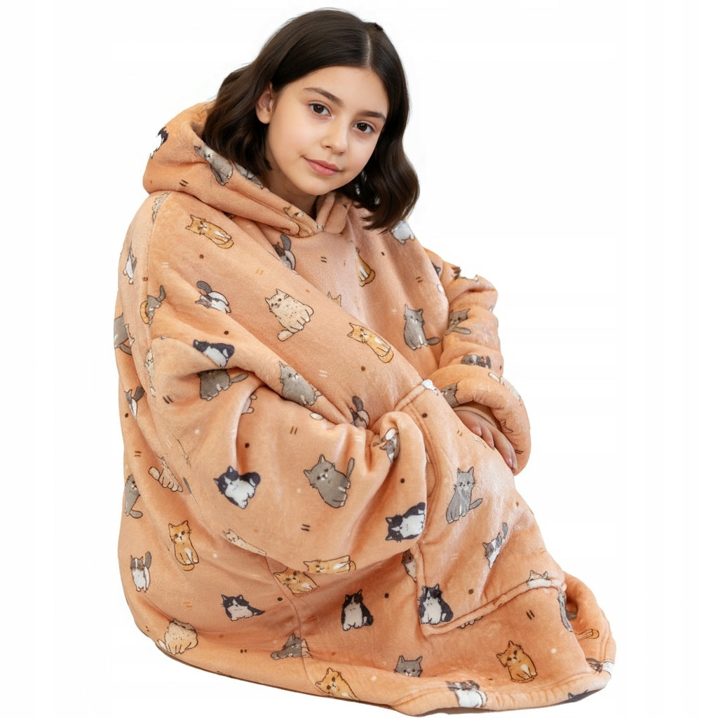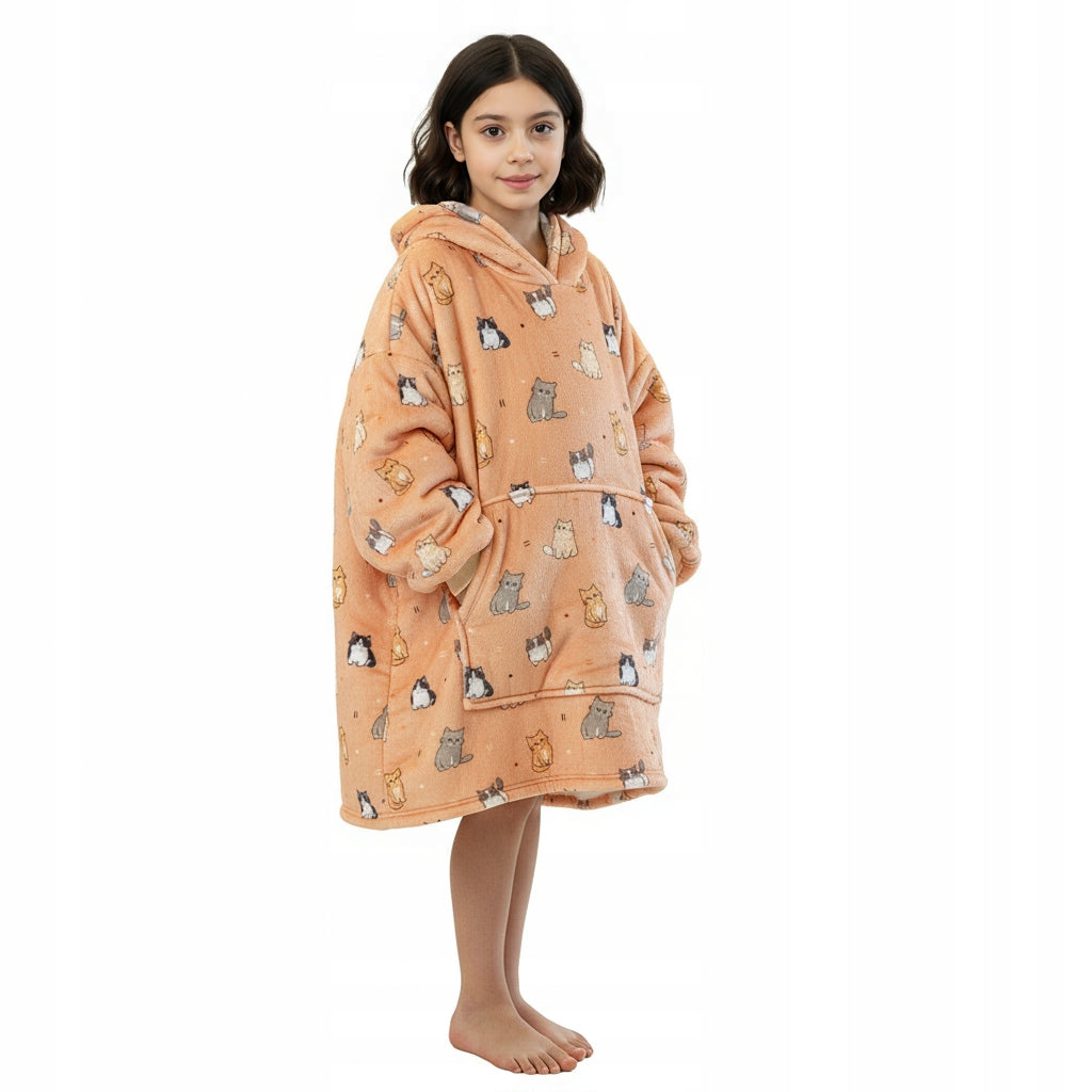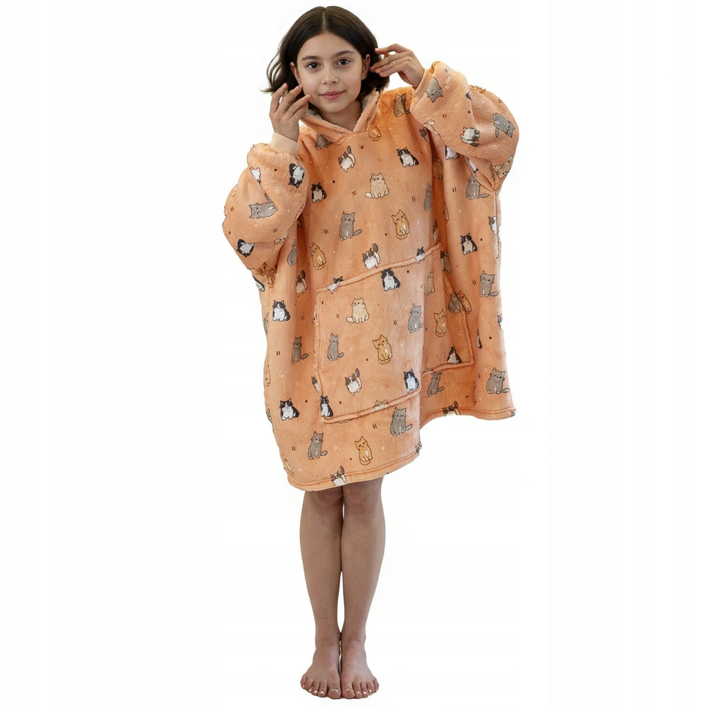 Šis vaikiškas džemperis-antklodė sukurtas maksimaliam jaukumui ir šilumai. Tai puikus pasirinkimas vėsiems vakarams namuose, ramiam poilsiui ar laikui po darželio ir mokyklos. Džemperis sujungia antklodės šilumą ir džemperio patogumą, todėl vaikas jausis laisvai ir komfortiškai.