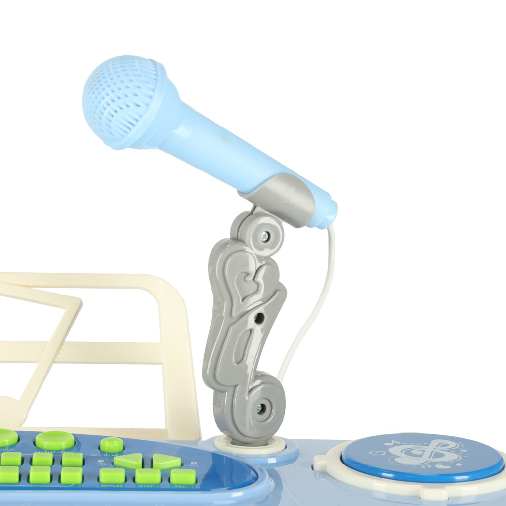 Atraskite muzikos pasaulį su mėlynu interaktyviuoju vaikišku klaviatūriniu pianinu! Šis 37 klavišų pianinas su mikrofonu ir stovu yra puiki priemonė jauniems muzikantams, padedanti lavinti kūrybiškumą ir ritmo pojūtį žaidžiant.