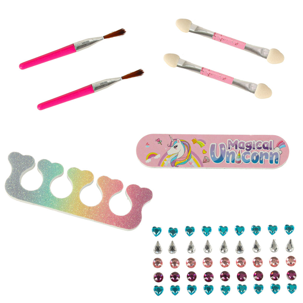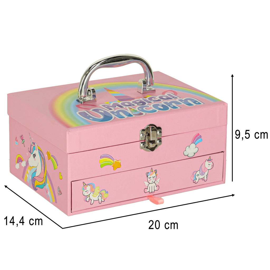 Vienaragio kosmetikos rinkinys mergaitėms: makiažas, nagų lakai, šešėliai lagaminėlyje su stalčiukais
