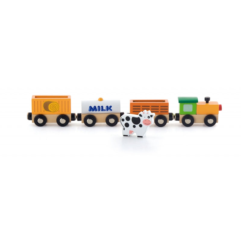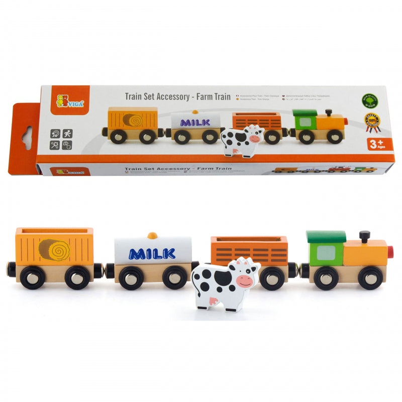 Medinė traukinio figūrėlė su vagonais, pripildytais su ūkiu susijusių krovinių. Jį sudaro 4 elementai, sujungti magnetais. Sukūrė gerbiamas medinių žaislų gamintojas Viga Toys, skirtas vaikams nuo 3 metų, puikiai tinka darželiui ir namams.