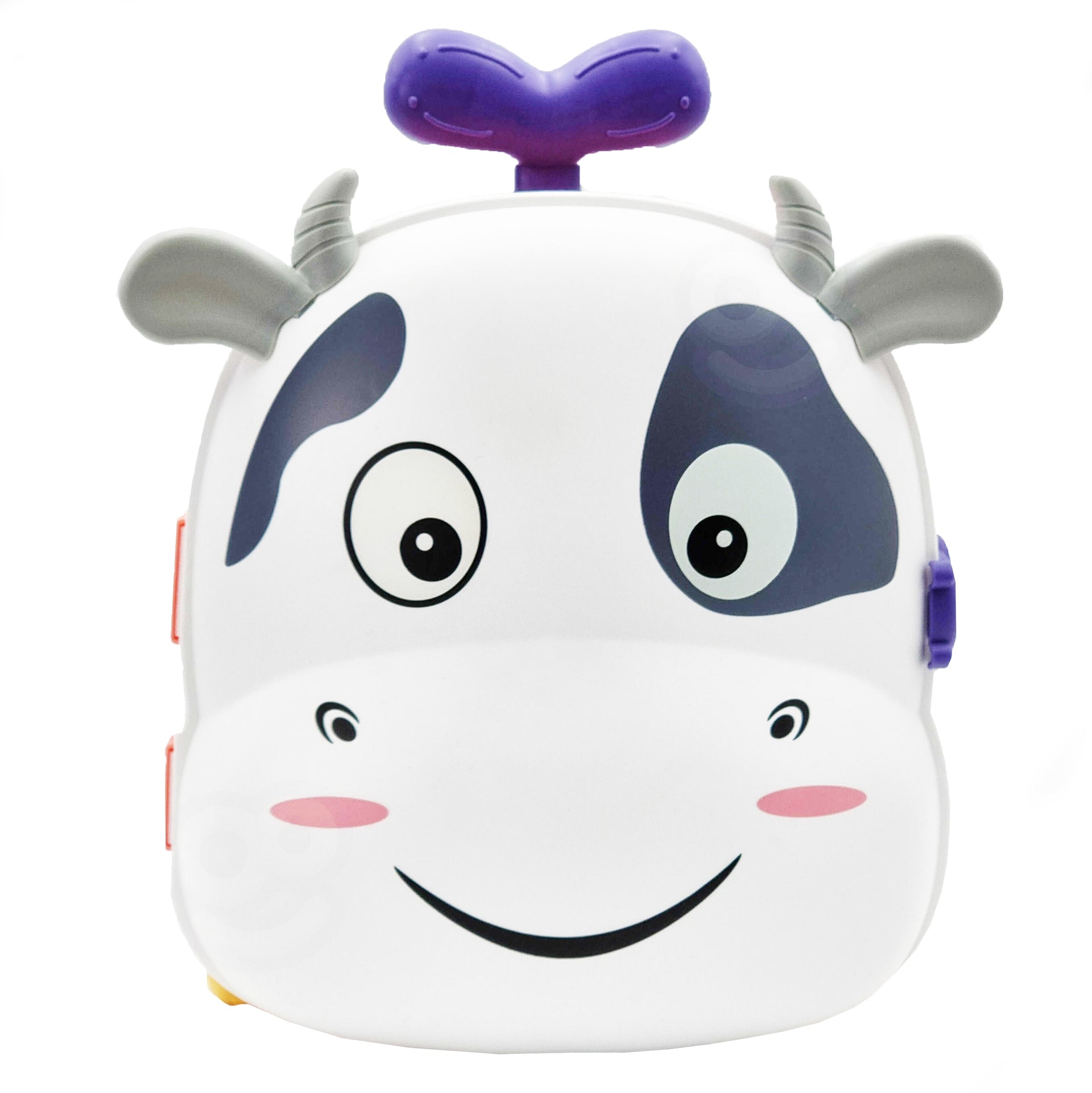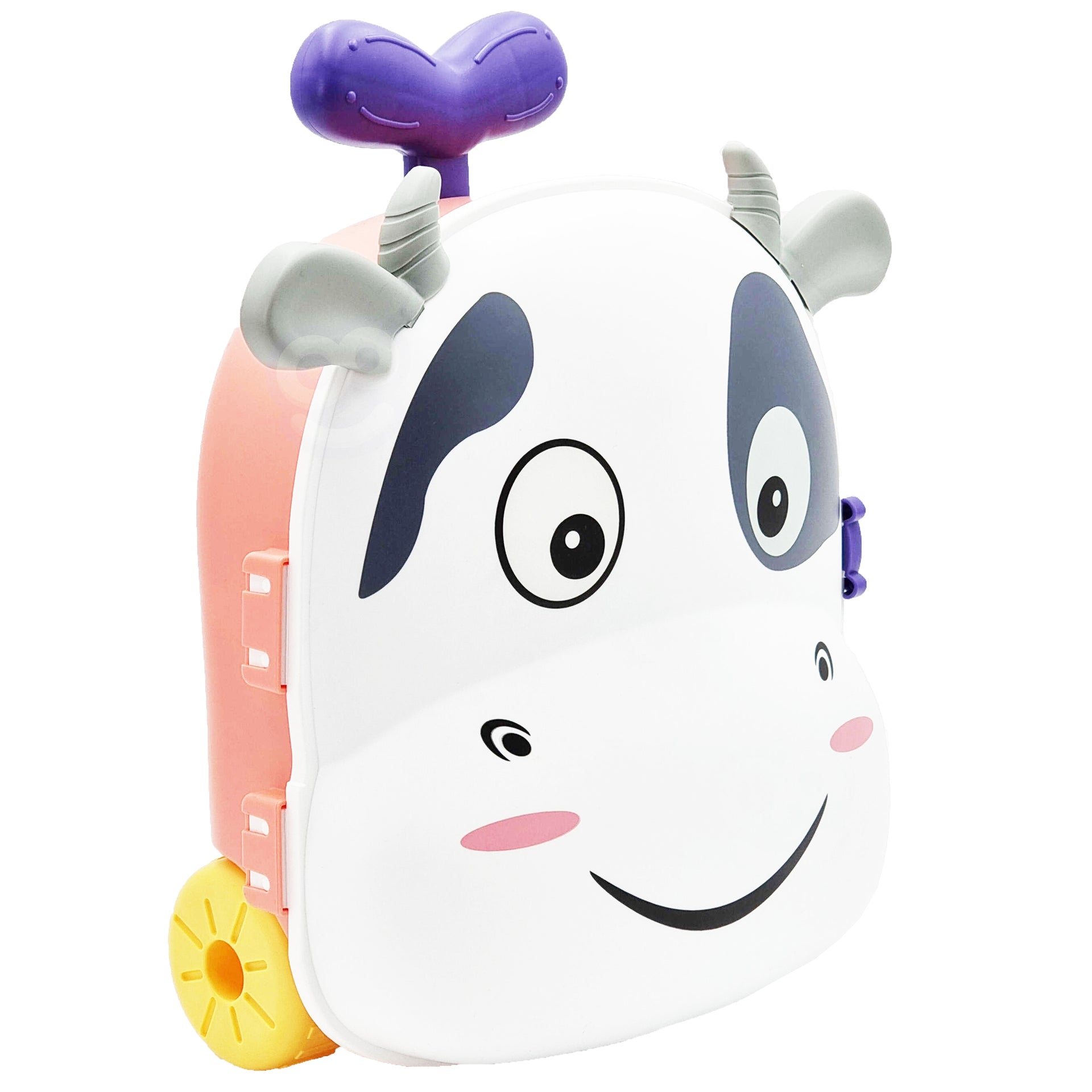- Interaktyvus vandens žaidimas: Lagamino dugnas virsta vandens talpa – vaikas pildo vandenį į karvytės galvą ir stebi srovių nutekėjimą.
