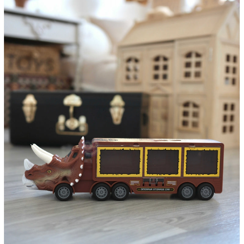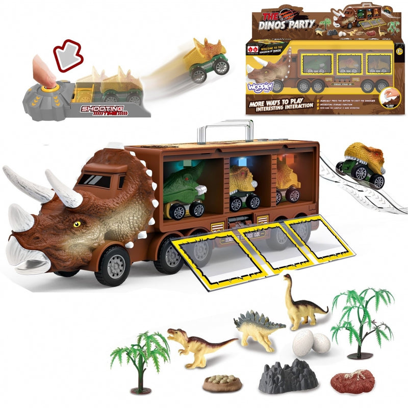 WOOPIE dinozaurų sunkvežimis su paleidimo priemone ir žaisliniais automobiliais 15 vnt.