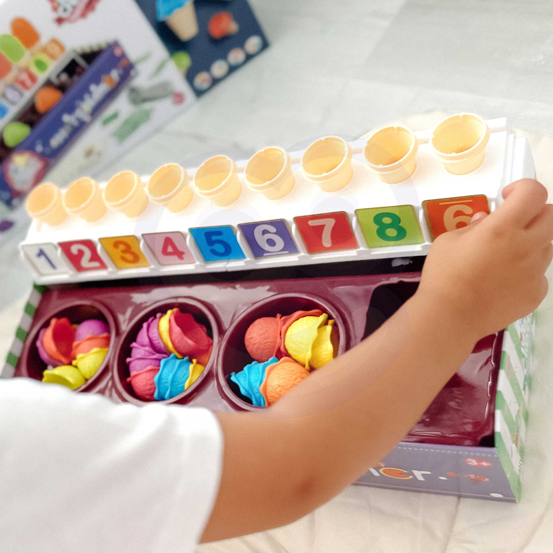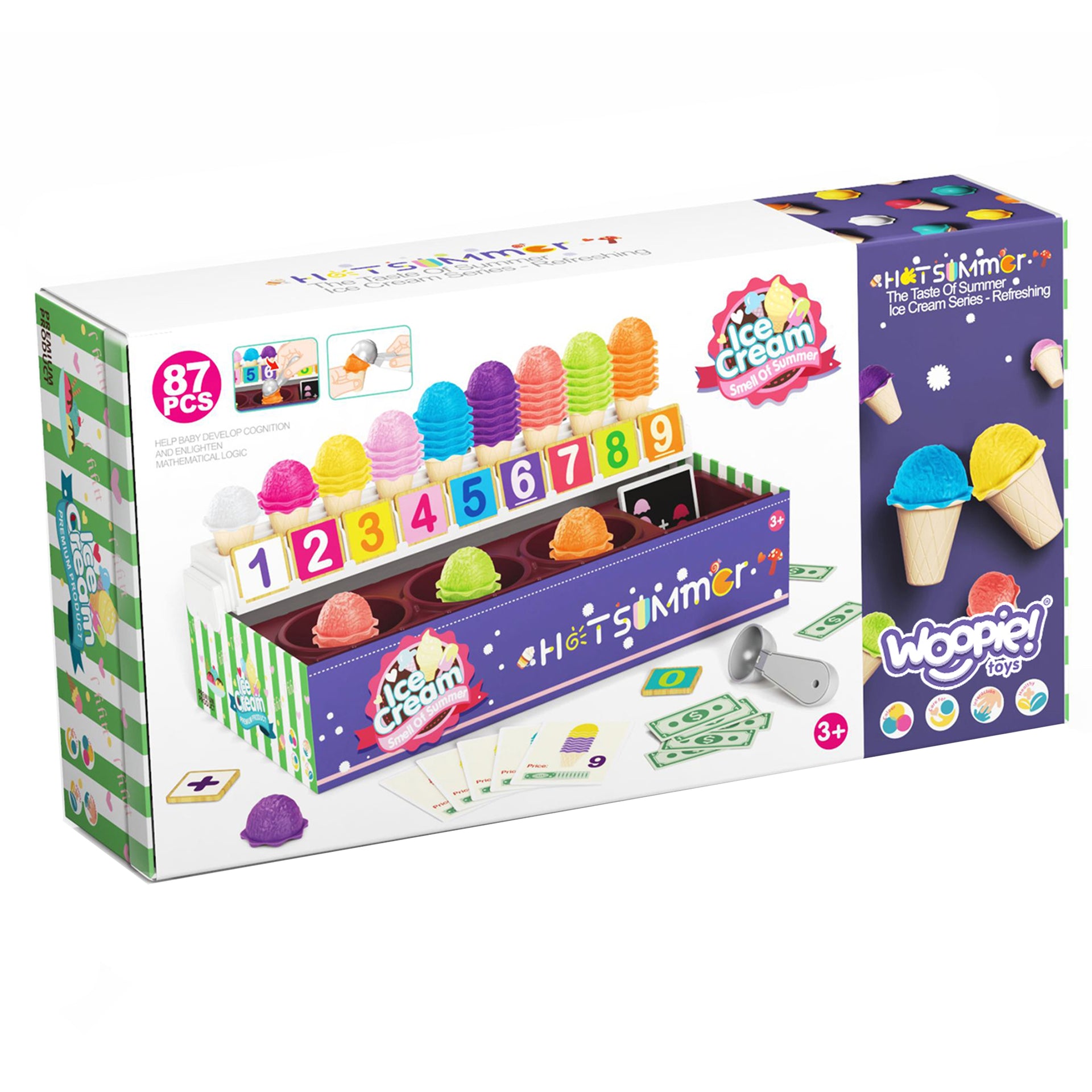Šis edukacinis ledainės rinkinys yra puikus būdas paversti mokymąsi maloniu nuotykiu, padedančiu vaikams lavinti esminius socialinius ir matematinius įgūdžius. Tai idealus pasirinkimas kūrybiškam ir mokomajam žaidimui namuose.