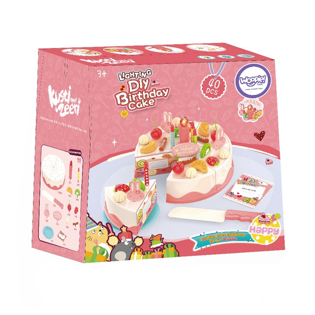 - Didelis rinkinio komplektas: Šį 40 elementų rinkinį sudaro ne tik tortas ir dekoracijos, bet ir peilis pjaustymui, lėkštė bei gimtadienio atvirutė.