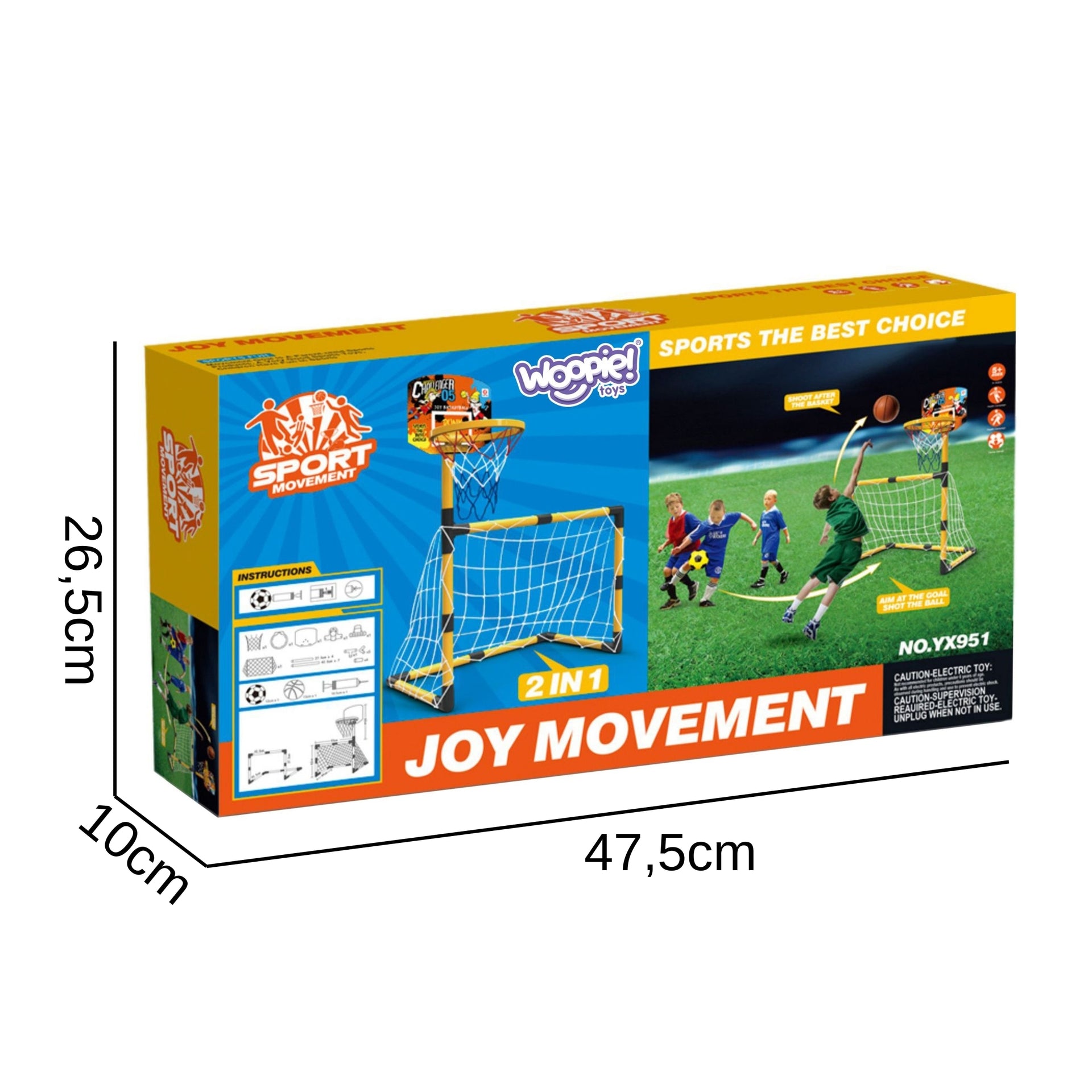 Woopie 2in1 sporto rinkinys yra puikus pasirinkimas aktyviam laisvalaikiui, sujungiantis krepšinio ir futbolo žaidimus viename komplekte. Šis rinkinys skirtas skatinti jaunuolius fizinei veiklai ir padeda lavinti stambiąją motoriką. Dėl patvarios ir stabilios konstrukcijos jis lengvai surenkamas ir tinka naudoti tiek viduje, tiek lauke.