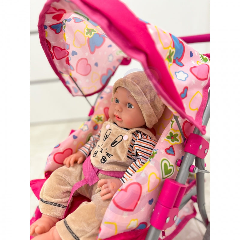 WOOPIE ROYAL lėlių vežimėlis su spalvingomis širdelėmis