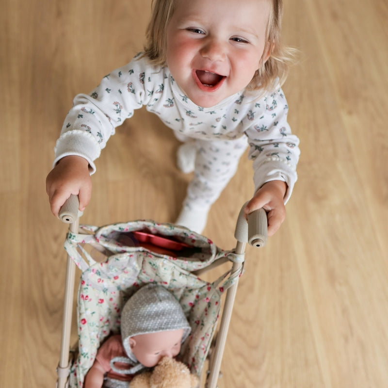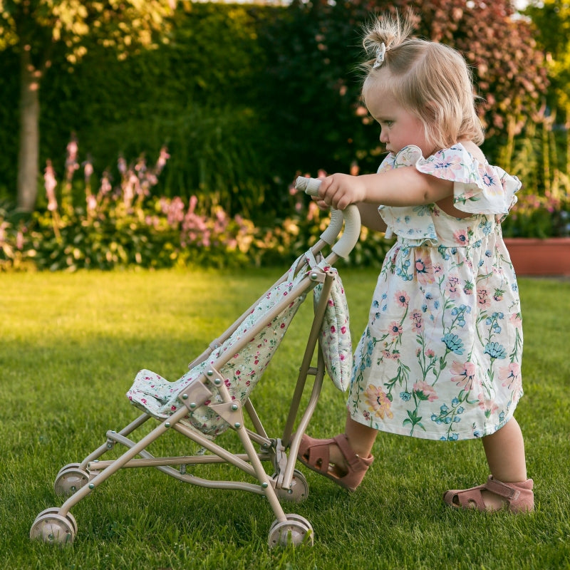 Šis gėlių rašto lėlių vežimėlis iš „Woopie“ yra puikus žaislas bet kuriai mergaitei ar berniukui, mėgstančiam žaisti su nameliais ir rūpintis savo mėgstamomis lėlėmis ar pliušiniais žaislais. Lengvas, sulankstomas dizainas leidžia jį lengvai nešioti ir puikiai tinka tiek viduje, tiek lauke. Patogios rankenos, pritaikytos vaikų rankoms, ir dvigubi ratukai užtikrina patogų važiavimą. Stilingas kreminės spalvos apmušalas su žaviu gėlių raštu suteikia unikalumo. Tai puiki dovanos idėja, lavinanti vaiko vaizduotę, empatiją ir rankų miklumą.